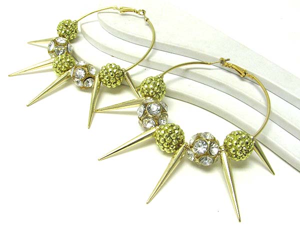 WHOLESALE 4 INCH HOOP CRYSTAL FIRE BALL AND METAL SPIKE BASKETBALL WIVES INSPIRED EARRING - HOOPS 371156