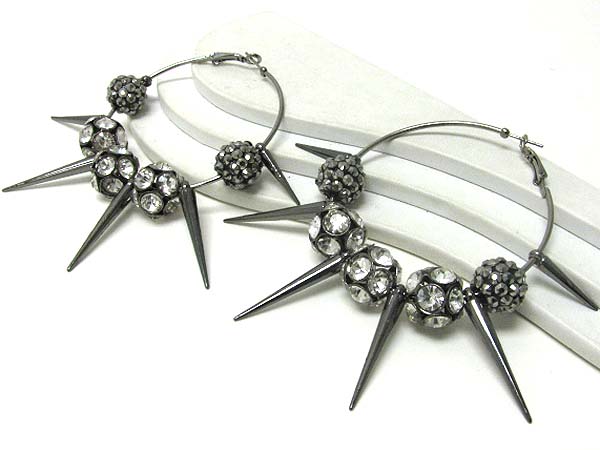 4 inch hoop crystal fire ball and metal spike basketball wives inspired earring - hoops