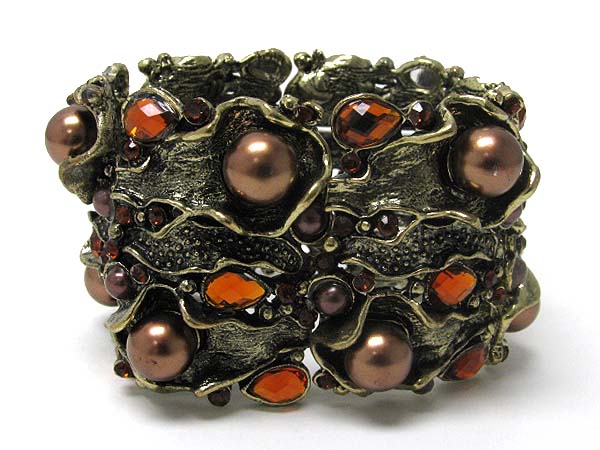 WHOLESALE CRYSTAL DECO PEARL IN OYSTER SHAPE LINK STRETCH BRACELET 371303