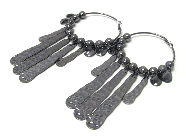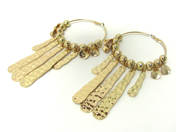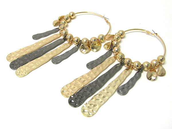 WHOLESALE 4 INCH HOOP MULTI METAL BALL AND HAMMERED LONG METAL BAR DROP BASKETBALL WIVES INSPIRED EARRING - HOOPS 371321