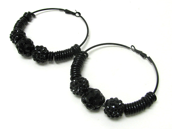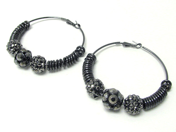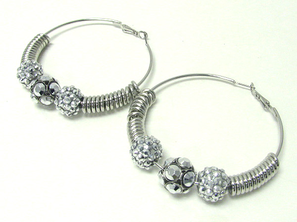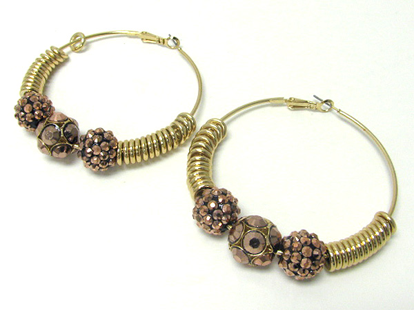 WHOLESALE 3 INCH HOOP CRYSTAL FIREBALL AND METAL RING DECO BASKETBALL WIVES INSPIRED EARRING - HOOPS 371334