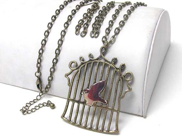 WHOLESALE BIRD IN CAGE PENDANT LONG NECKLACE EARRING SET 371499