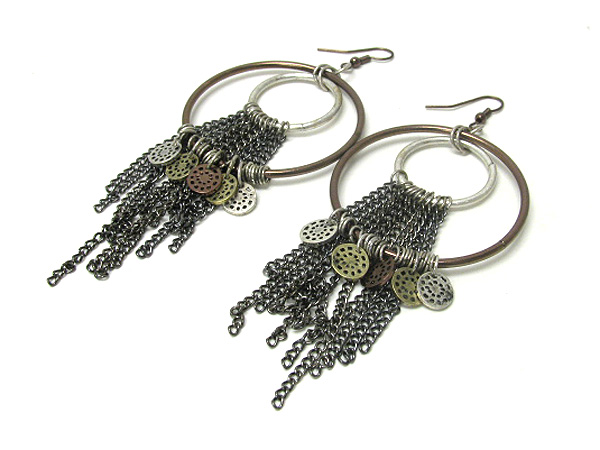 WHOLESALE DOUBLE HOOP AND MULTI CHAIN DROP EARRING - HOOPS 371581