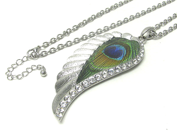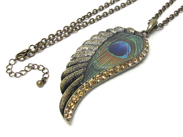 WHOLESALE CRYSTAL AND PEACOCK PAINT DECO LARGE ANGEL WING LONG NECKLACE 371615