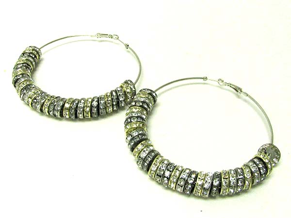 WHOLESALE 3.5 INCH HOOP TWO THIRD CRYSTAL RONDELLE RING DANGLE BASKETBALL WIVES INSPIRED EARRING - HOOPS 371832