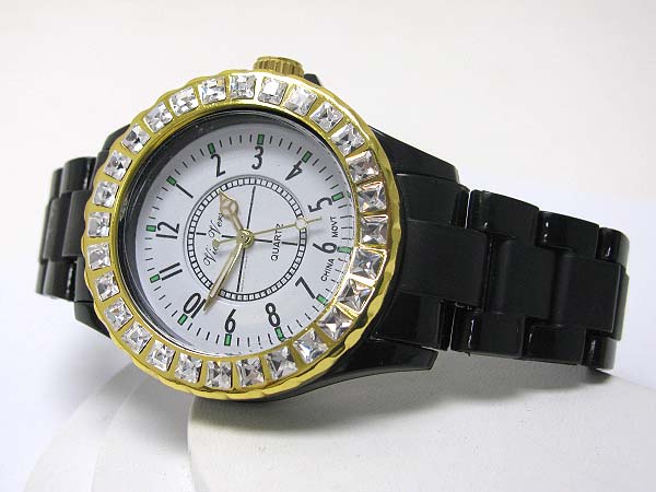 WHOLESALE BARGUETTE CRYSTAL STUD FASHION ACRYL BAND WATCH 371870