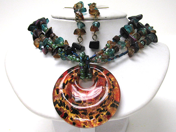 WHOLESALE MURANO GLASS MEDALLION PENDANT AND MULTI CHIPSTONE CHAIN NECKLACE EARRING SET 371883