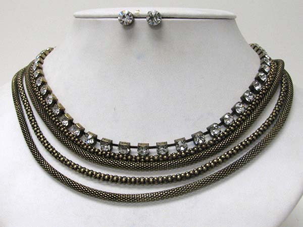 WHOLESALE MULTI TUBE CHAIN AND RHINESTONE ACCENT NECKLACE EARRING SET 371925