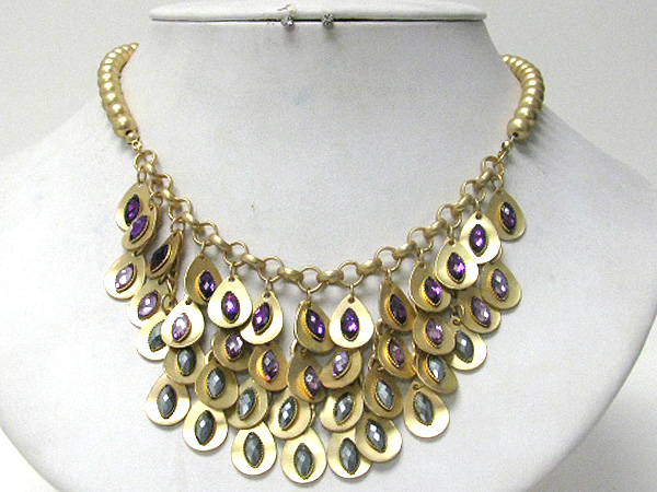 WHOLESALE MULTI TEAR DROP FACET GLASS AND METAL LINK AND DROP NECKLACE EARRING SET 371931