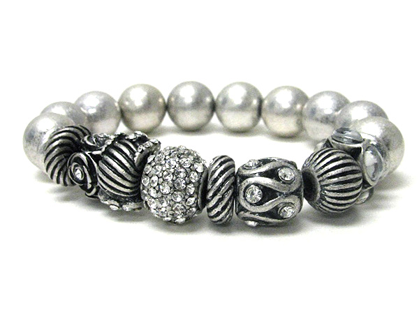 WHOLESALE CRYSTAL AND METAL BALL LINK STRETCH BRACELET 371945