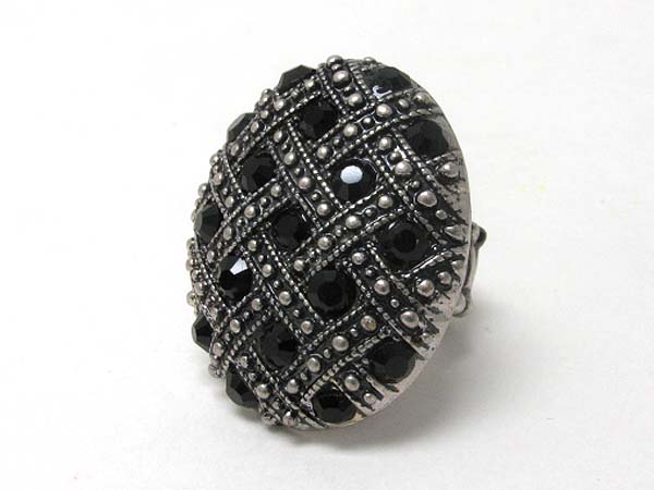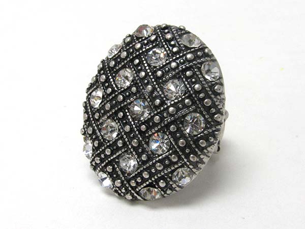 WHOLESALE CRYSTAL STUD MESH TEXTURED METAL OVAL STRETCH RING 371997