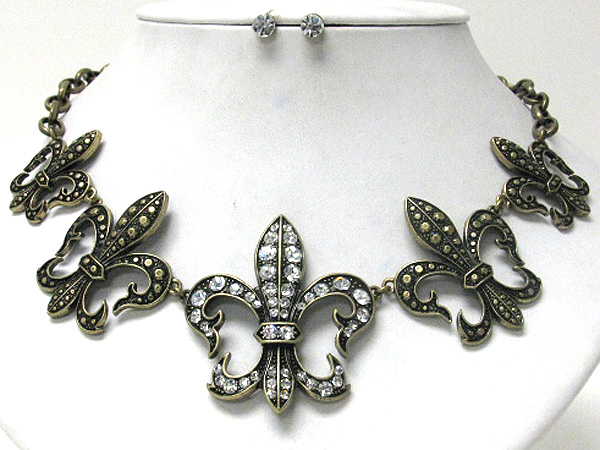 WHOLESALE CRYSTAL DECO MULTI FLUER DE LIS LINK NECKLACE EARRING SET 372059