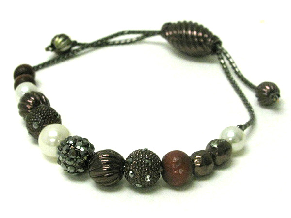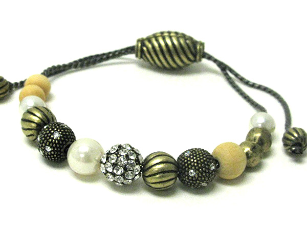 WHOLESALE MULTI CRYSTAL AND METAL BALL LINK PULL TIE FRIENDSHIP BRACELET 372075