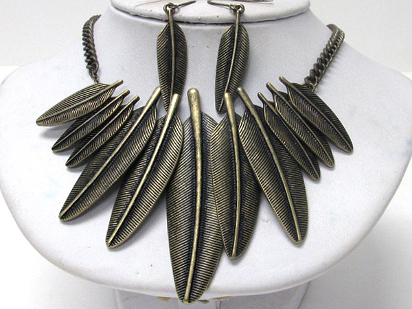 WHOLESALE MULTI METAL FEATHER LINK NECKLACE EARRING SET 372091