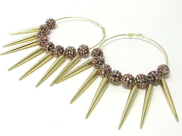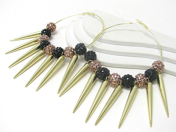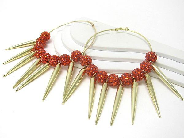 WHOLESALE 3 INCH HOOP CRYSTAL FIREBALL AND METAL SPIKE BASKETBALL WIVES INSPIRED EARRING? - HOOPS 372114