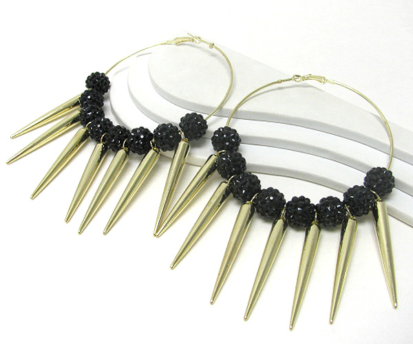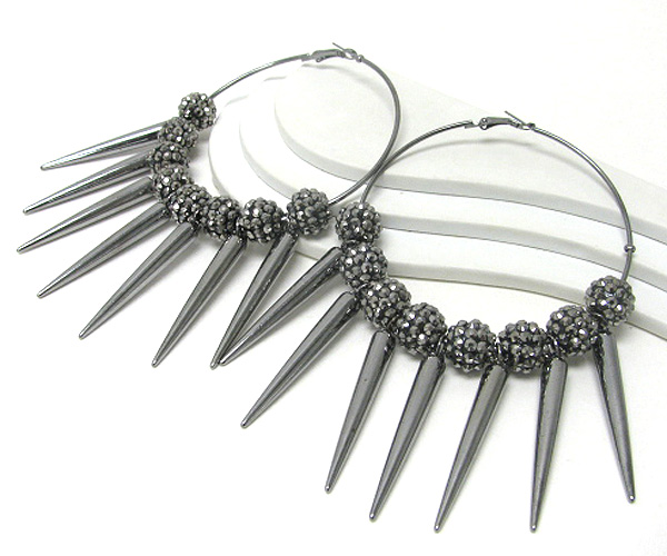 3 inch hoop crystal fireball and metal spike basketball wives inspired earring? - hoops