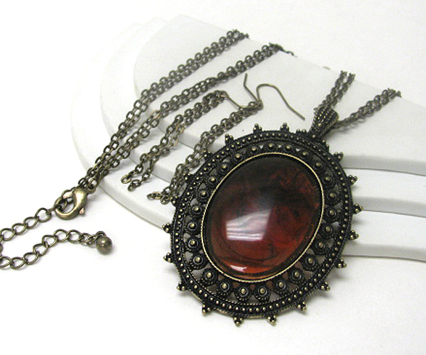 WHOLESALE 3 INCH LONG LARGE STONE PENDANT LONG NECKLACE 372316