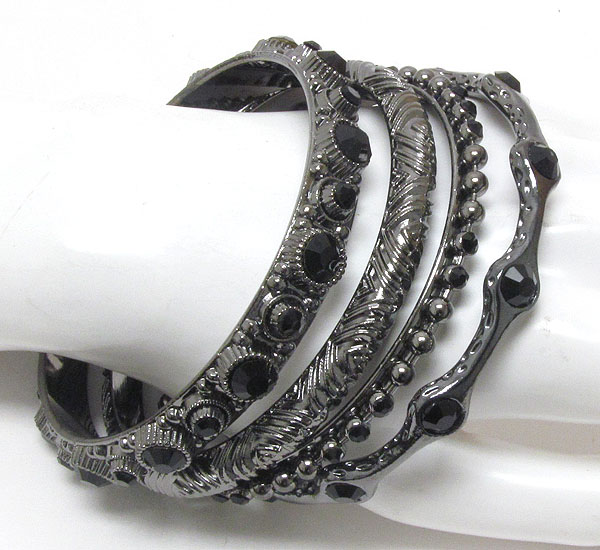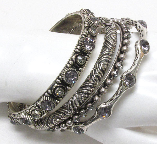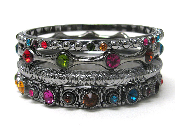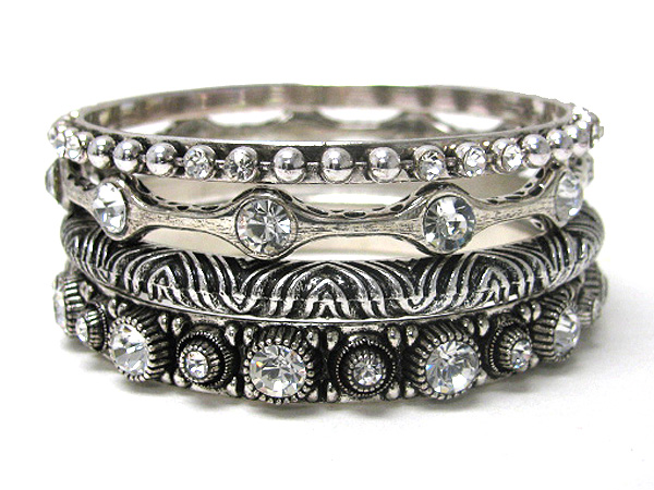 WHOLESALE CRYSTAL DECO MIXED METAL BANGLE SET OF 4 372433
