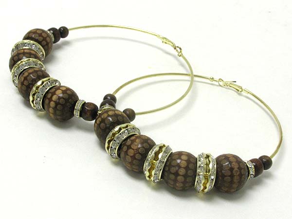 4 inch hoop animal print wood ball and crystal rondelle ring basketball wives inspired earring - hoops