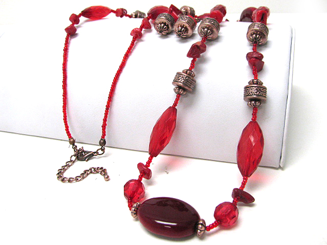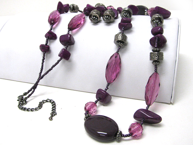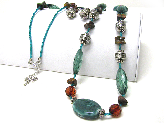 WHOLESALE MIXED STONE AND BEADS DECO LONG NECKLACE EARRING SET 372884