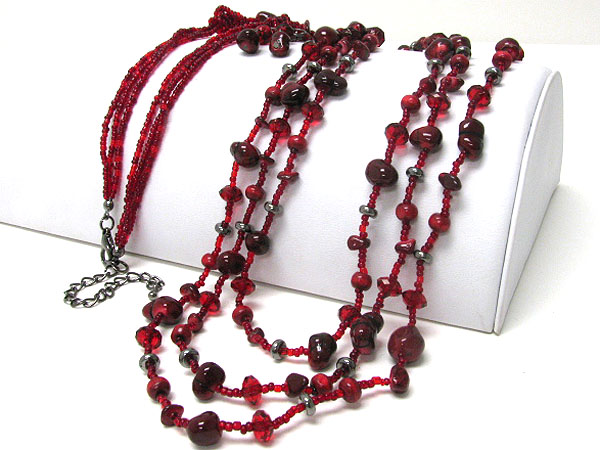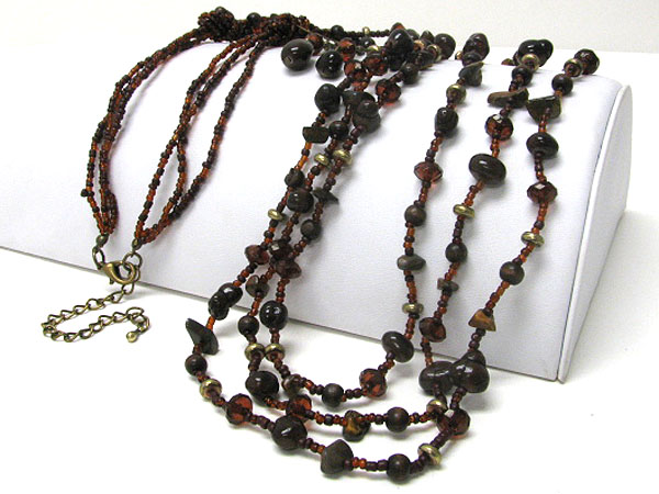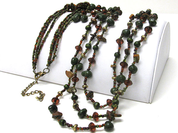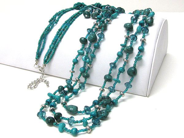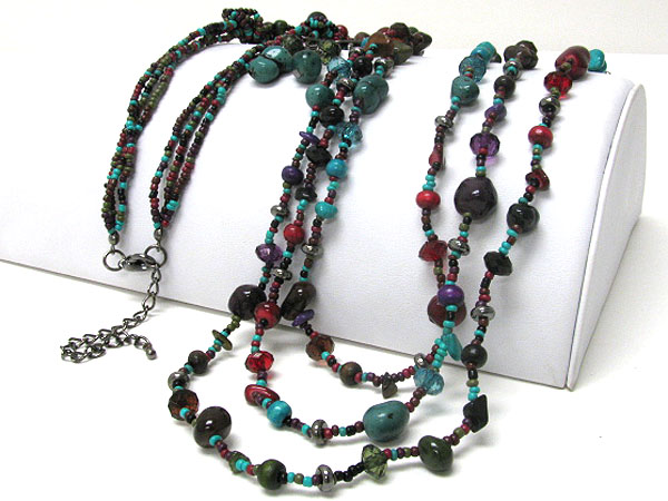 Natural chip stone and mixed beads long necklace earring set