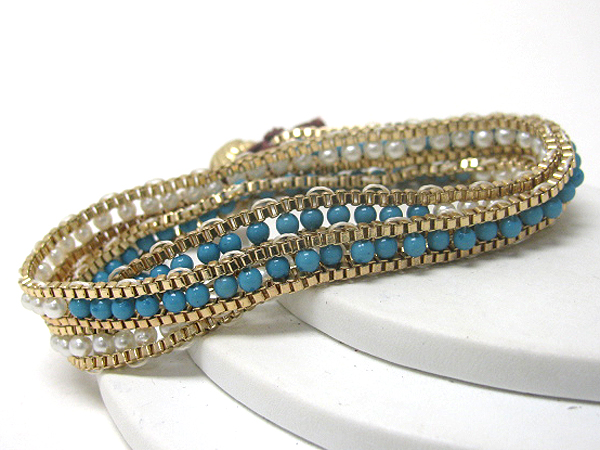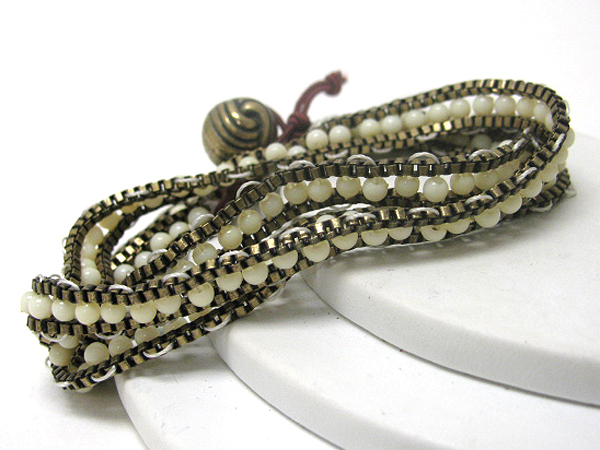 WHOLESALE GLASS BEAD AND CHAIN LINK FREE WRAP STYLE BRACELET 372979