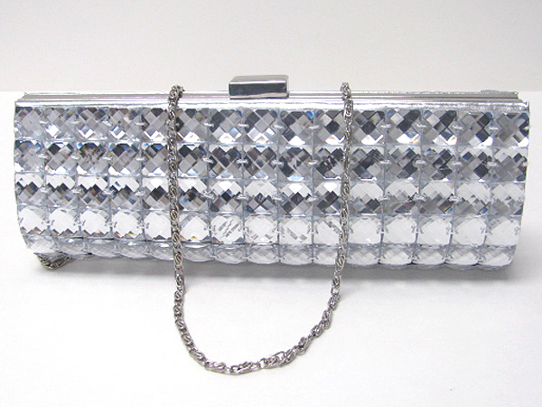 Acrylic stone stud snap closure evening bag - detachable chain strap