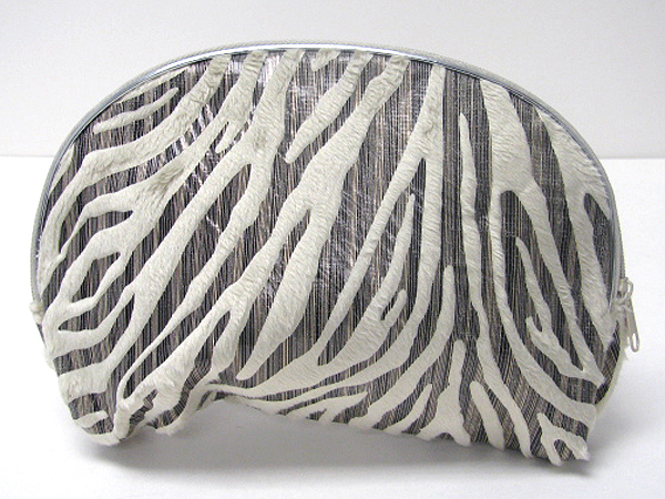 WHOLESALE ANIMAL PRINT ZIPPER TOP CLOSURE VELVET COSMETIC BAG 373045