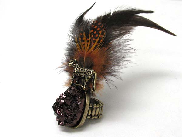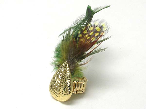 WHOLESALE NATURAL FEATHER DECO METAL LEAF STRETCH RING 373132