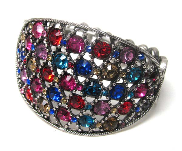 WHOLESALE CRYSTAL STUD LARGE CURVED OVAL STRETCH BRACELET 373158