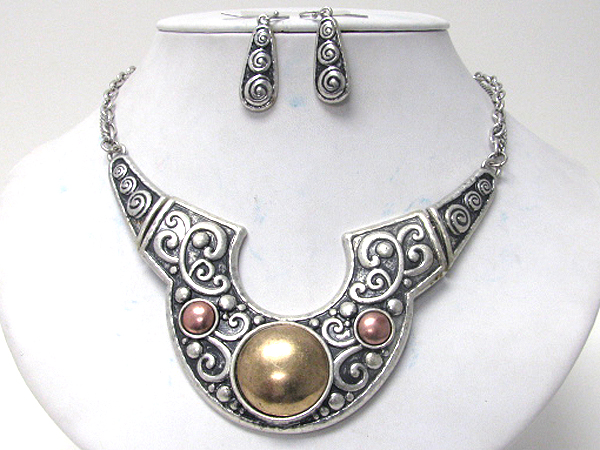 WHOLESALE MEDIEVAL STYLE METAL FILIGREE NECKLACE EARRING SET 373395
