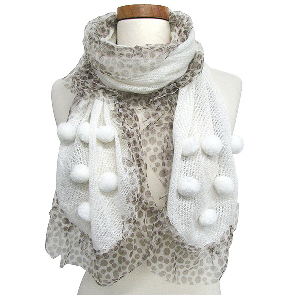 WHOLESALE MESH RUFFLE SCARF W/POM POM 373400
