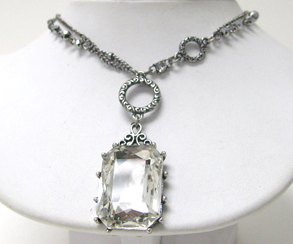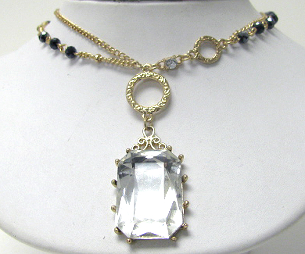 Facet glass square pendant necklace