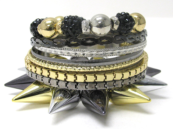 Fireball metal spike box chain mix multi row metal bangle set