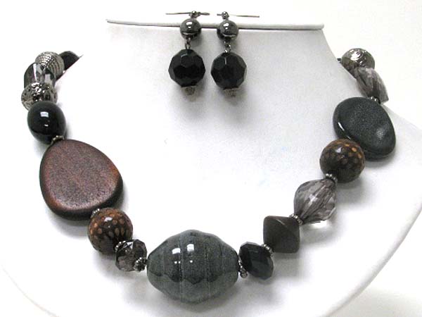 WHOLESALE WOODS AND CERAMIC STONE AND MIXED BEADS NECKLACE EARIRNG SET 373607