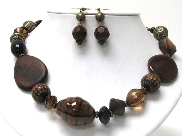 Woods and ceramic stone and mixed beads necklace earirng set