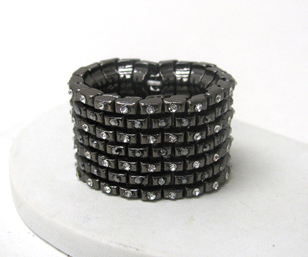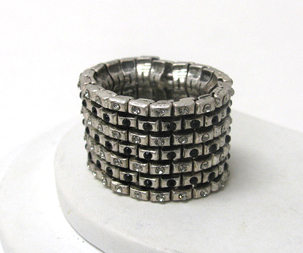 WHOLESALE CRYSTAL DECO MULTI METAL BAR LINK STRETCH RING 373700