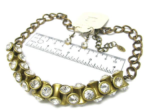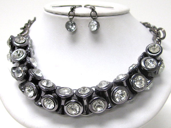 Crystal deco multi metal piece link necklace earring set