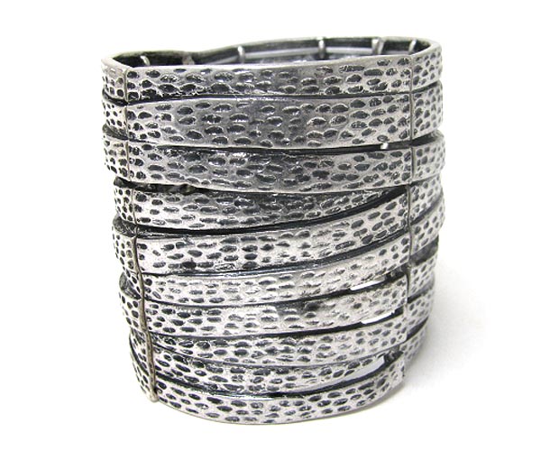 WHOLESALE MULTI LINE AND WIDE TEXTURED METAL STRETCH BRACELET 373993
