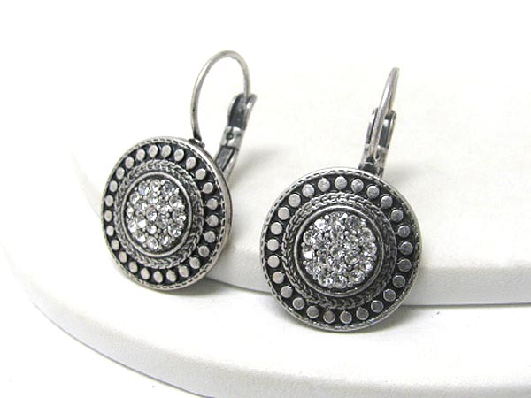 WHOLESALE CRYSTAL CENTER DECO TEXTURED METAL DISK EARRING 373996