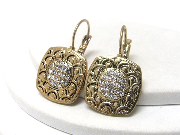 WHOLESALE CRYSTAL CENTER DECO TEXTURED METAL SQUARE EARRING 373999
