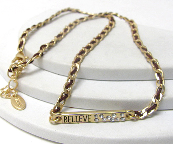 WHOLESALE CRYSTAL DECO MESSAGE METAL PLATE CHAIN AND CORD NECKLACE 374396
