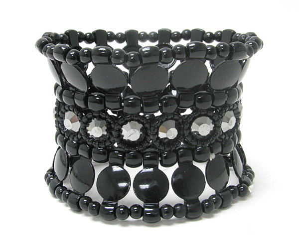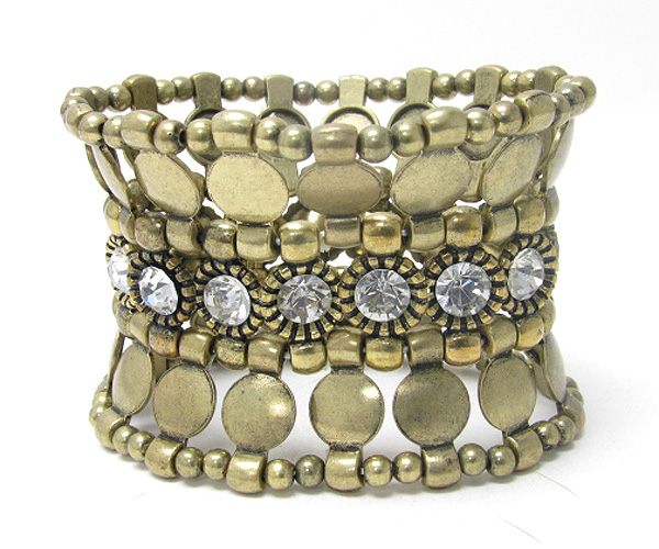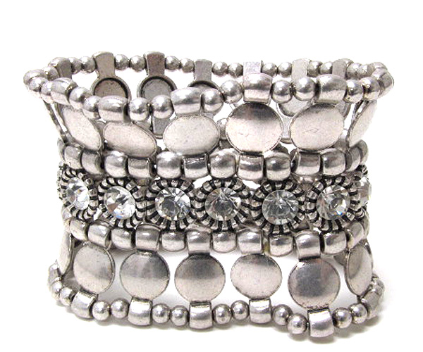WHOLESALE CRYSTAL AND MULTI METAL DISK LINK WIDE STRETCH BRACELET 374410