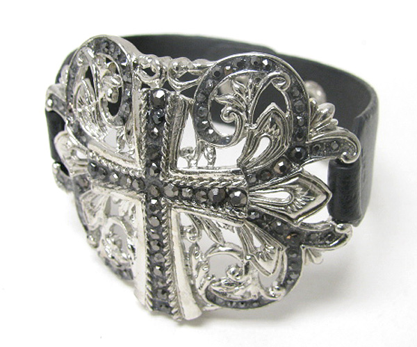 Crystal stud cross leeather wristband