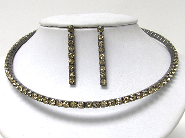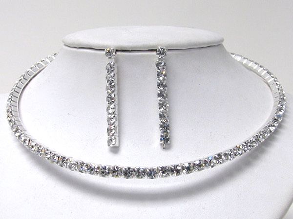 Single line rhinestone chocker necklace earring set