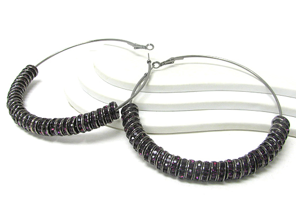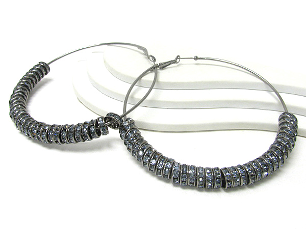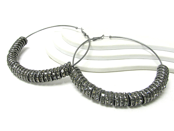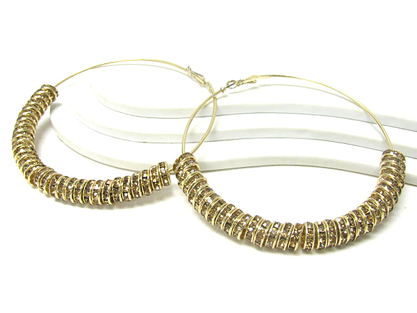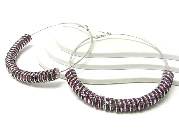WHOLESALE 3.5 INCH HOOP TWO THIRD CRYSTAL RONDELLE RING DANGLE BASKETBALL WIVES INSPIRED EARRING - HOOPS 374939