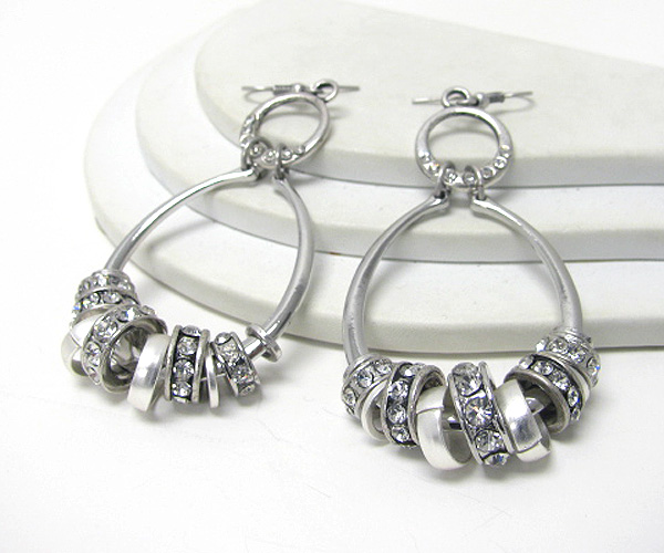 Crystal deco rondell on tear drop hoop earring - hoops