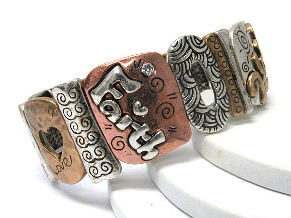 WHOLESALE CHICOS STYLE CRYSTAL STUD FAITH HOPE LOVE MESSAGE STRETCH METAL BRACELET 375253