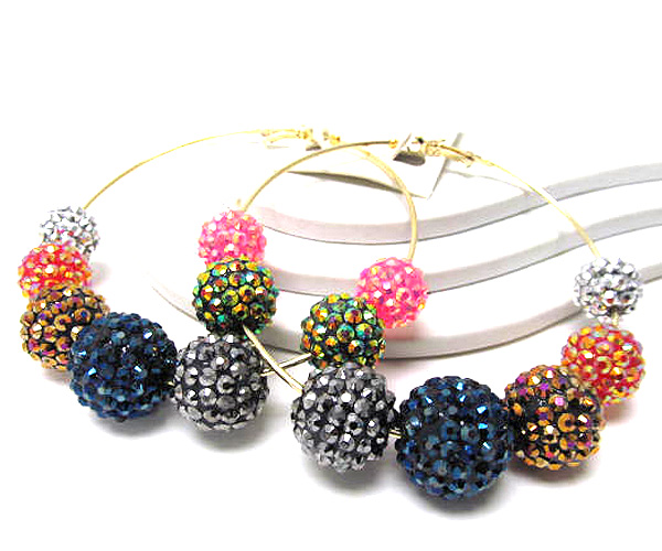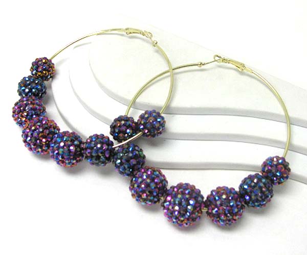WHOLESALE 3.5 INCH HOOP CRYSTAL FIREBALL BASKETBALL WIVES INSPIRED EARRING - HOOPS 375436