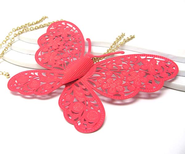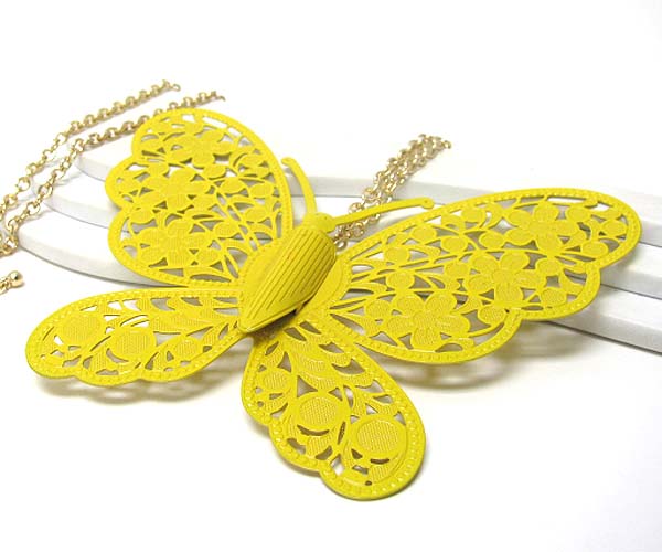 WHOLESALE EXTRA LARGE METAL FILIGREE BUTTERFLY PENDANT LONG NECKLACE 375642